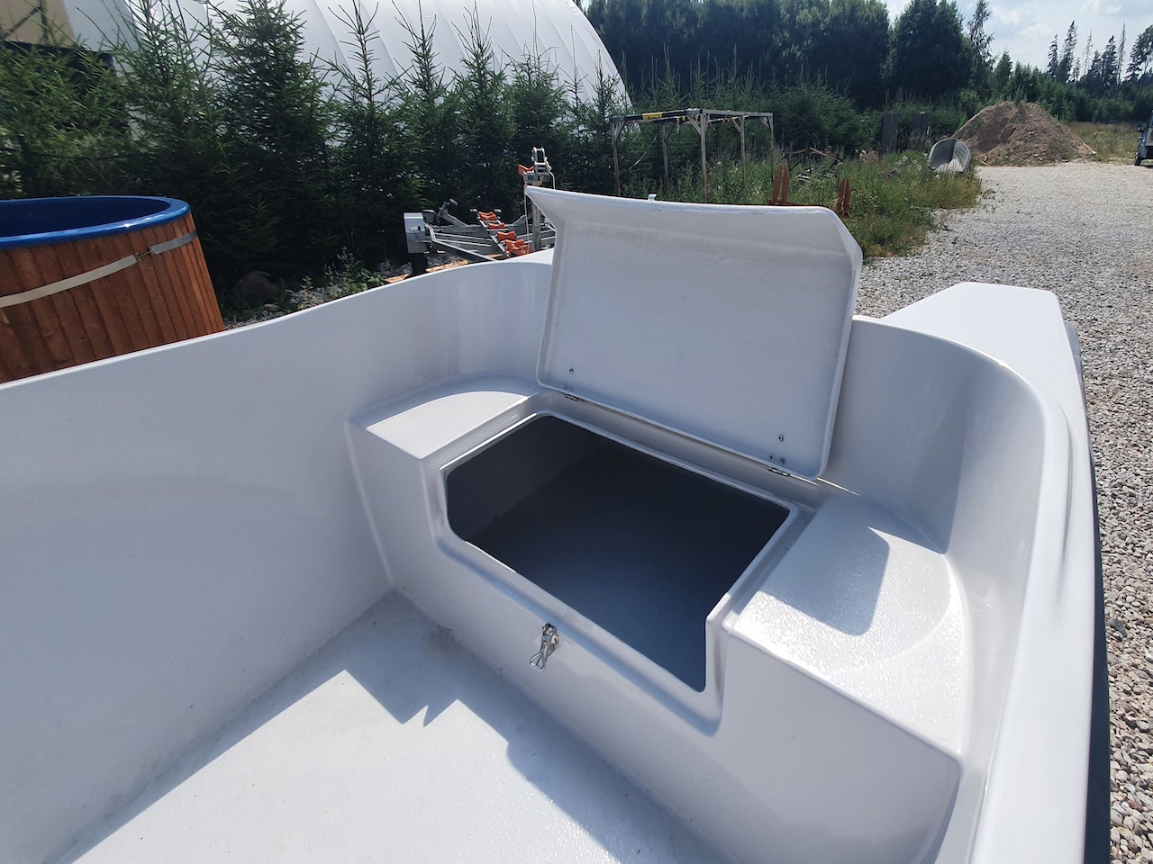 Ahtris, keskel ja vööris luugiga avatav panipaik